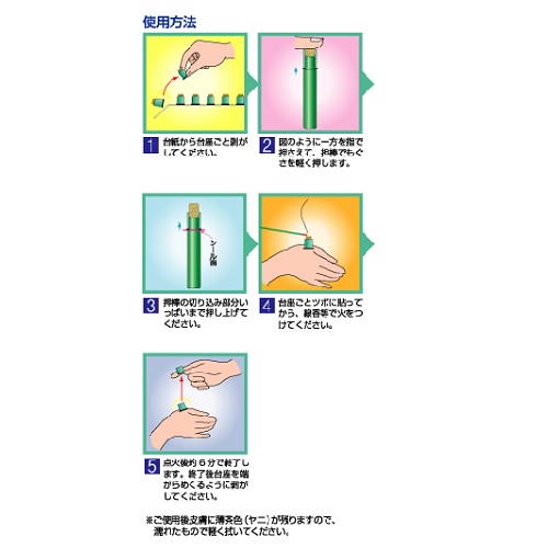 もぐさを紙筒に詰めたもので、モグサと皮膚との間に紙筒で空間を作って使用するお灸です。